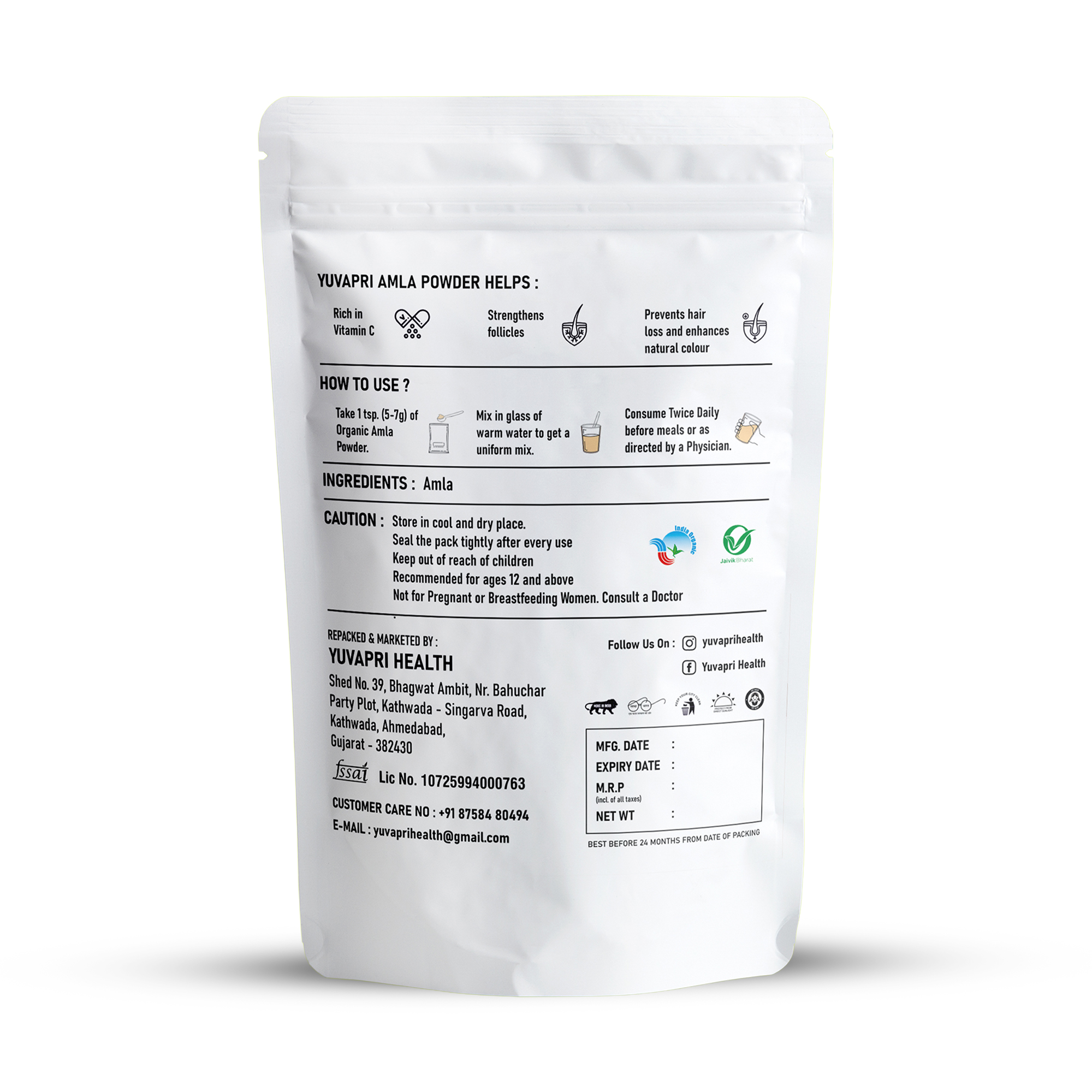 Yuvapri Amla Powder is made from carefully selected Emblica officinalis fruit, one of the richest natural sources of Vitamin C and antioxidants. Traditionally valued for supporting immunity, digestion, skin health, and hair strength, Amla helps nourish the body from within.
