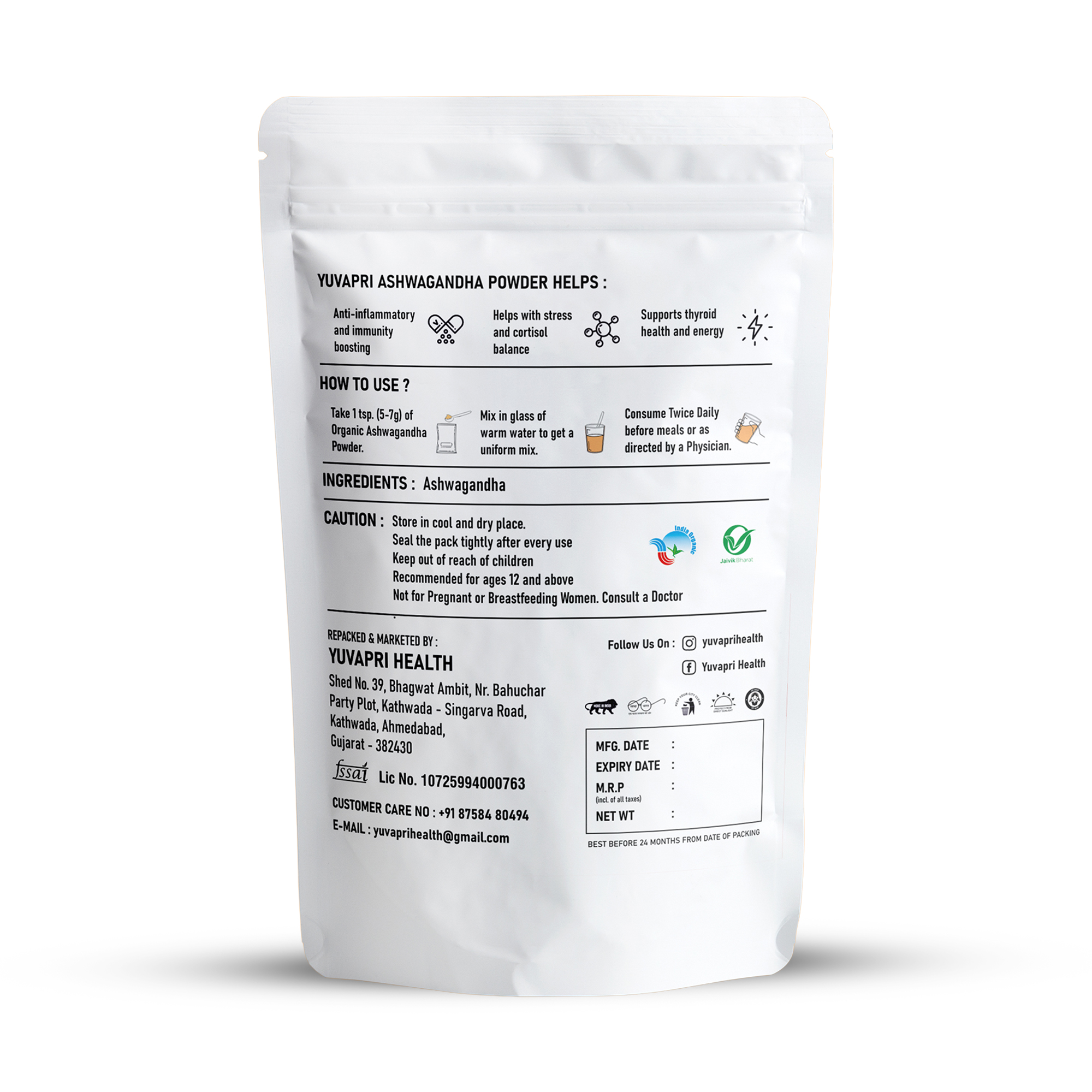 Yuvapri Ashwagandha Powder is made from carefully selected Withania somnifera root, one of the most trusted adaptogenic herbs known for supporting stress balance, restful sleep, stamina, and mental focus.