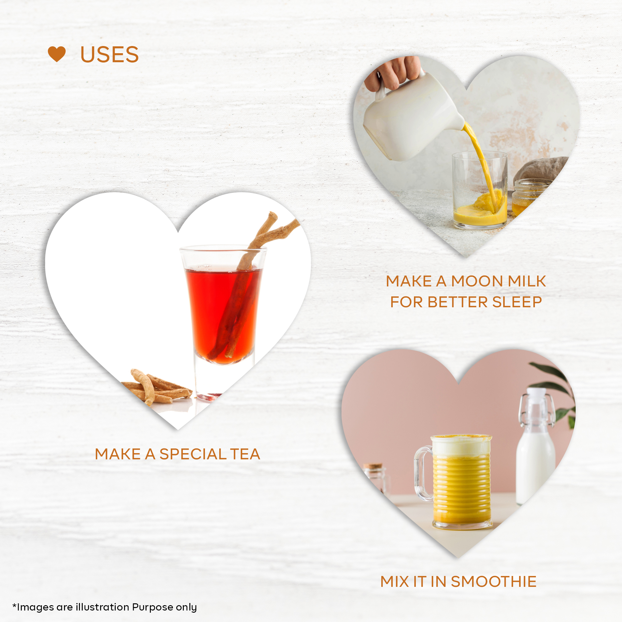 From a traditional wellness perspective, Ashwagandha is known as a Rasayana (rejuvenator) and Balya herb, helping: