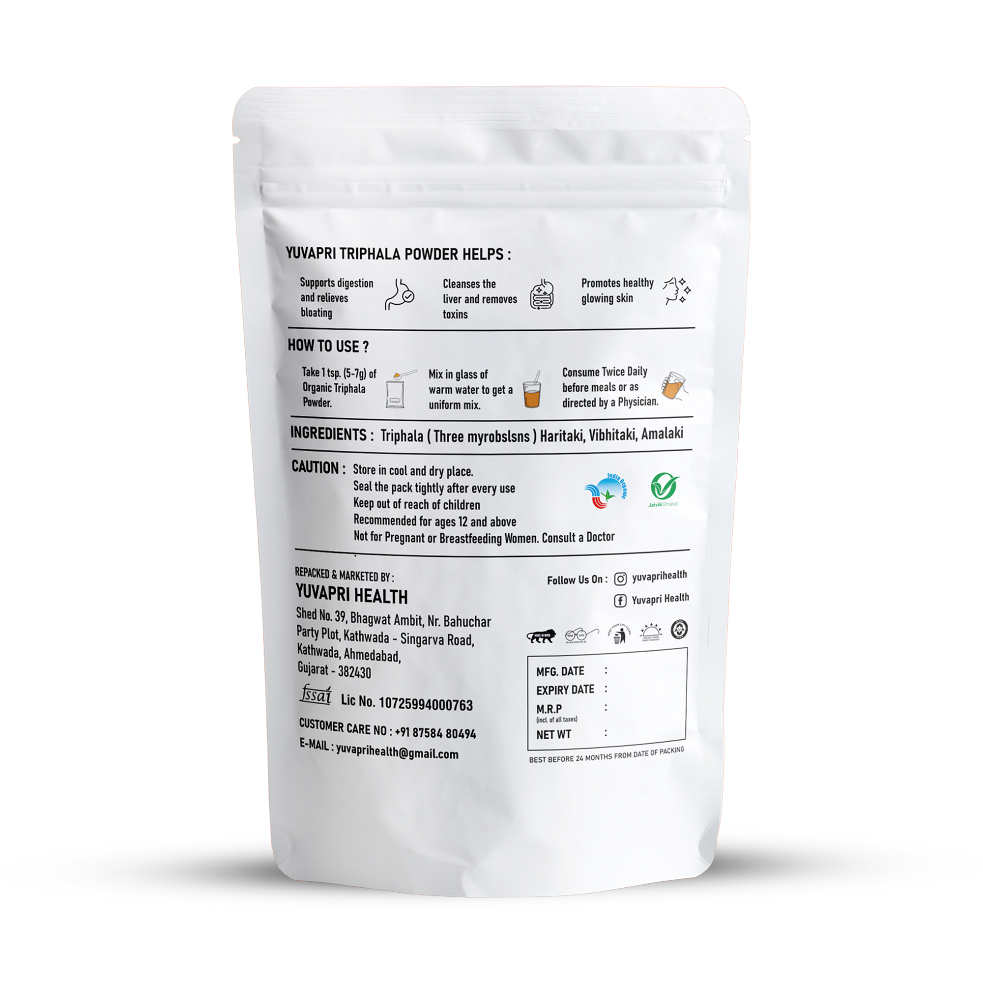 Yuvapri Triphala Powder is a time-tested Ayurvedic formulation made from the powerful combination of Amalaki, Haritaki, and Bibhitaki. This traditional herbal blend is known for supporting healthy digestion, gentle detoxification, and overall gut balance.