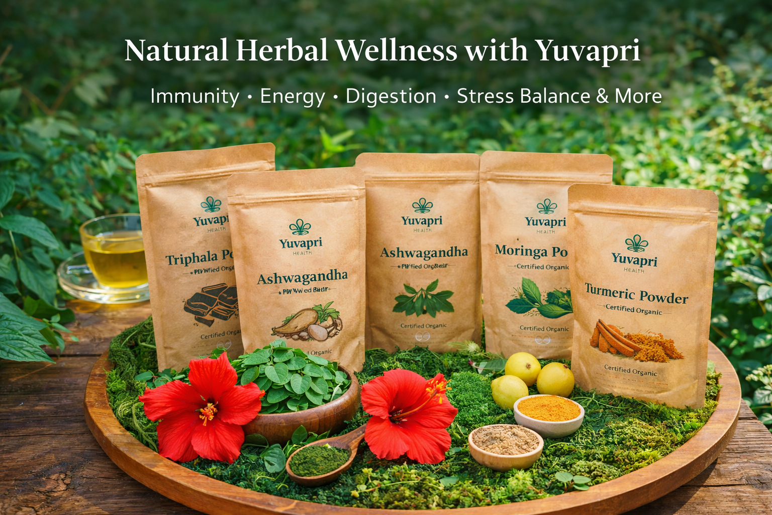 Discover the power of natural herbal wellness with Yuvapri Health. Our thoughtfully crafted range of pure and organic herbal powders supports everyday health needs such as immunity strengthening, energy enhancement, digestion support, stress balance, detoxification, and overall vitality.