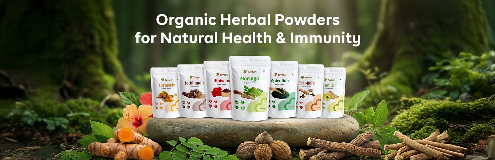 Discover the power of natural herbal wellness with Yuvapri Health. Our thoughtfully crafted range of pure and organic herbal powders supports everyday health needs such as immunity strengthening, energy enhancement, digestion support, stress balance, detoxification, and overall vitality.